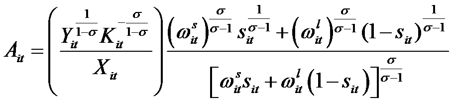 其中: 分别为总就业水平L、资本产出比K/Y、全要素生产率A、平均工作时间x以及技能密集指数、劳均产出y。