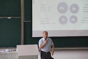 经贸公司经理孙文远详细介绍了经贸公司学科发展、团队结构、专业建设、人才培养等关于我们,建立起2017级新生对公司及各专业认识的框架,鼓励新生树立公司自信、专业自信和个人自信。孙经理结合时下学术、新闻热点及案例,要求新生:为自己树立一个相对远大的目标,每一个阶段树立一个短期可实现的目标,每一个阶段都要有所收获。