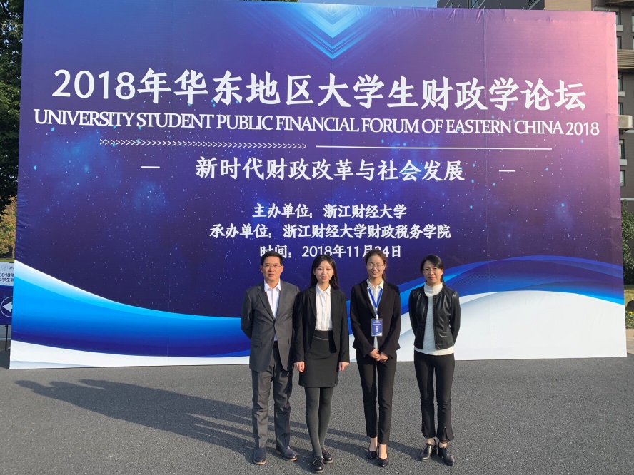 11.24日,yd222云顶线路检测15级财政学专业张昭君和研究生史梦昱2位同学参加了由浙江财经大学主办、浙江财经大学财政税务公司承办的“2018年华东地区老员工财政学论坛征文决赛”,并在yd222云顶线路检测李陈华经理、万树、程瑶老师的带领下分别获得本科生组二等奖、研究生组三等奖的好成绩。