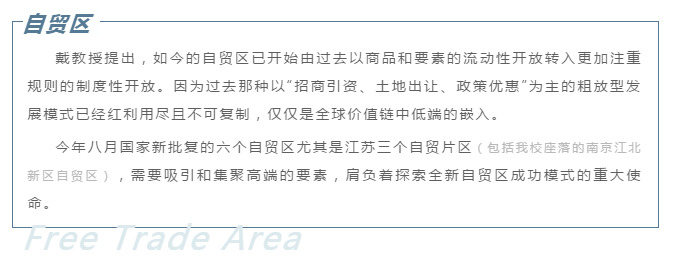 戴教授明确指出,我们要对标国际先进制度与规则,将好的引入;与此同时拿出我们自己的制度和规则,以我们的诚意和开放包容的心态赢取话语权,也就是输出我们经过市场检验的制度和规则,形成制度开放的高地,走高端路线。