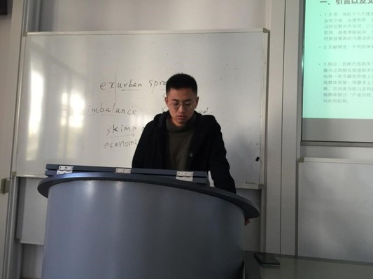 政治经济学组许志超的汇报主题为《基于DSR模型乡村旅游对于乡村振兴作用机制的研究——以句容市为例》,主要内容介绍了为什么要选用DSR模型,其作用机制以及以江苏省句容市为例案例分析。参会的其他研究生就汇报内容提出问题和建议。
