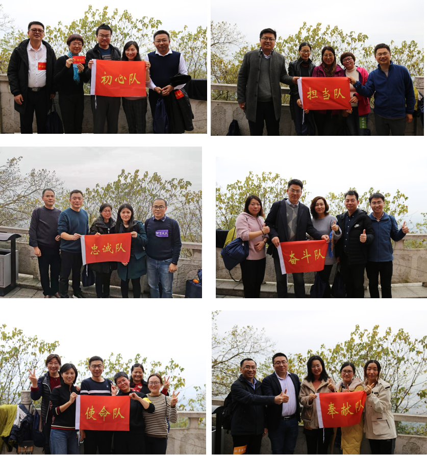 最后,开展了登山比赛活动,初心队、使命队、忠诚队、奉献队、担当队和奋斗队等六支队伍高举队旗,弘扬新四军革命精神,你追我赶、一路攀登,六支队伍均顺利登上了茅山山顶。