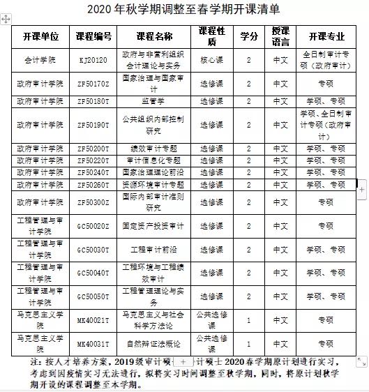 因新型冠状病毒引起的肺炎疫情防控工作需要,公司根据省政府的工作部署,开学时间延迟,为减少疫情对研究生教育的影响,落实上级教育主管部门“停课不停学”的工作要求,保证培养质量和研究生顺利完成学业,并结合公司研究生教育的实际,现就2020年春学期公司产品工作安排调整方案和网络教学相关工作安排公告如下:按照“推迟开学不停学”的要求,结合疫情实际状况,拟将春学期和秋学期教学计划统筹安排,细化落实导师第一责任人的要求。尽量不延迟2020届毕业生的毕业时间,各公司产品公司可根据开学延迟情况,在学位论文开题、预答辩、送审、复审、答辩、学位授予等环节做相应延迟调整。2020年春学期原定20周,研究生教学17周。因开学时间延迟,在延迟开学的时间里,所有授课教学主要以网络直播授课、线上辅导、在线教学、员工网络自学、教学视频录制与分发自学等方式为主。个别线上教学的确有困难的课程,可以申请开学后补课或者延期到暑假,以不影响秋学期教学科研实践为限。暂停组织员工在公司、生源居住地或赴外地开展的所有实验、实习、实训、实践活动;2019级审计专硕春学期实习与秋学期理论教学调换,2019级会计专硕春学期实习调整到暑假或秋学期;同时,将相关专业秋学期的课程调整至春学期,2月17日前完成选修课程的选课。其中,马克思主义公司承担的2门公共选修课《马克思主义与社会科学方法论》《自然辩证法概论》,调换授课地点增加选课人数,将拟选修该课程的员工插入现有授课班级。