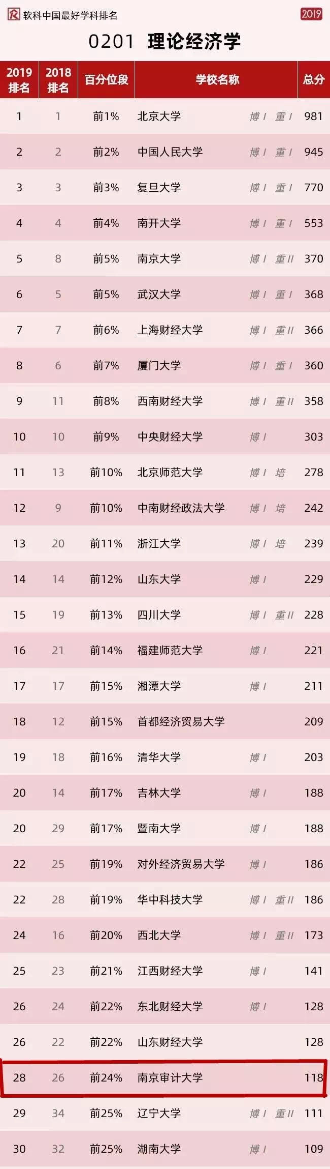 去年10月,上海软科正式发布2019中国最好学科排名。南审应用经济学学科进入全国前8%,位列第21位,理论经济学学科全国前24%,位列全国第28位。