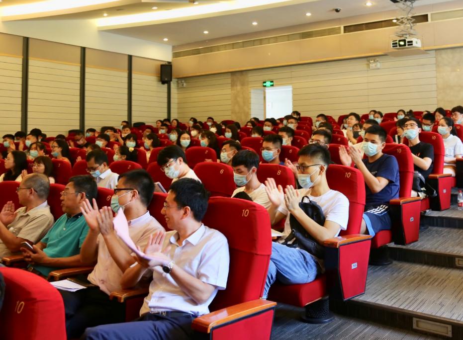 李陈华经理、姜德波经理、导师代表陈怡教授先后上台发言。经理与导师代表就公司发展现状、师生互选流程进行了相关介绍,告诫新生关注经济发展与国家政策变化,在学习过程中要目标明确、资源共享、坚持快乐学习的理念,老师们深刻而不失风趣的语言缓解了同学们初来乍到的紧张,掌声与欢笑声充斥在学术报告厅内。