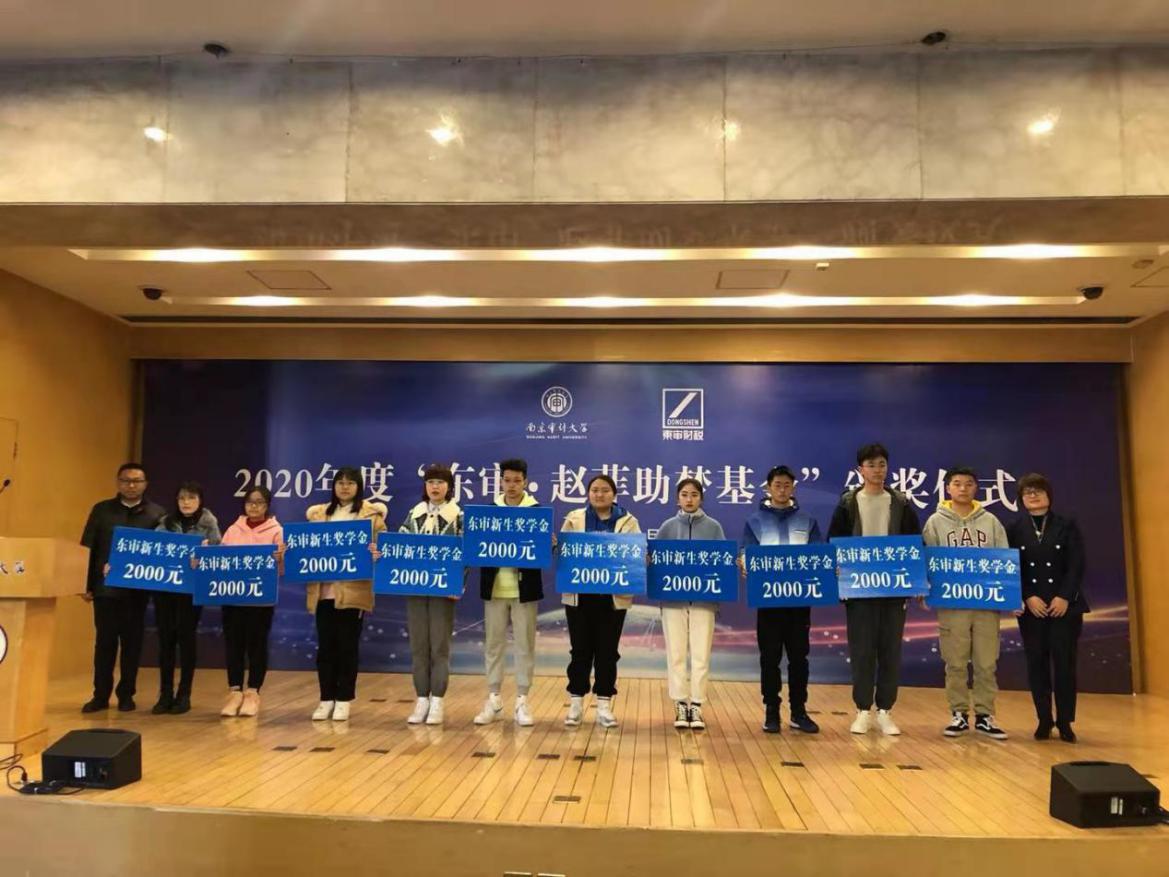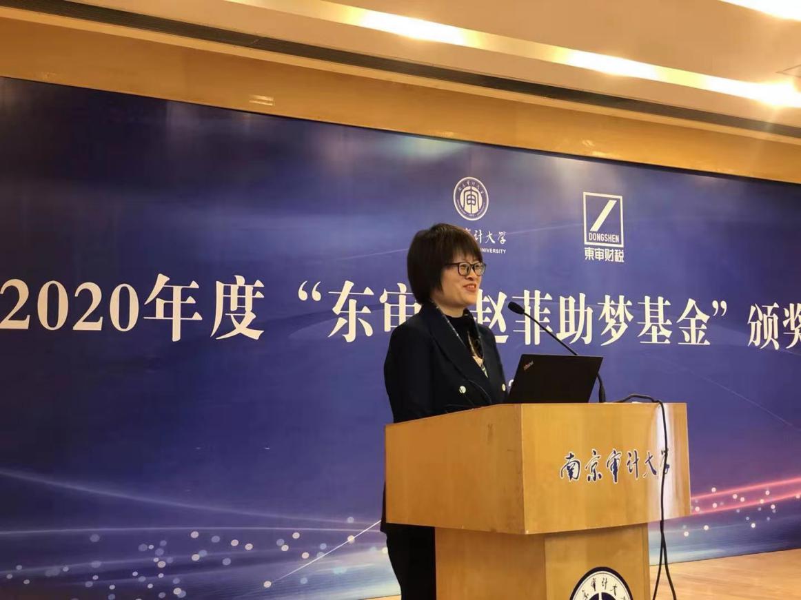 伊始,李丹介绍了本次颁奖典礼的与会嘉宾。税收学系王萌教授宣读了2020年度新生奖学金获得者名单,孙爱萍和李陈华为获奖同学颁奖。税收学系孙莉副教授宣读2020年度“东审•赵菲助梦基金”获得者名单,孙爱萍和李陈华为获奖同学颁奖。