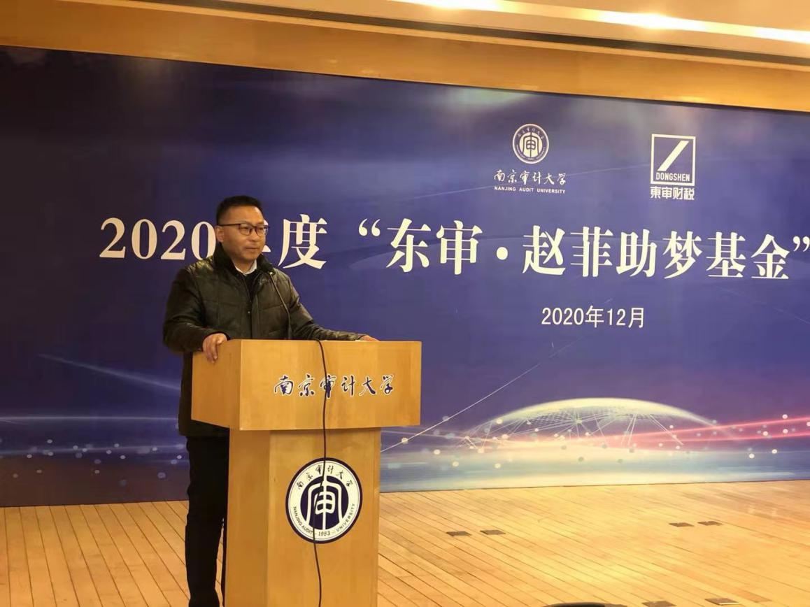 12月25日上午,2020年度“东审•赵菲助梦基金会”颁奖仪式在敏达学术报告厅举行。东审鼎立国际会计师事务所合伙人孙爱萍经理、yd222云顶线路检测经理李陈华教授、税收学系主任王萌教授、税收学系教师代表、2020级税收学系员工出席了活动,颁奖仪式由东审研究中心副主任、税收学系李丹副教授主持。
