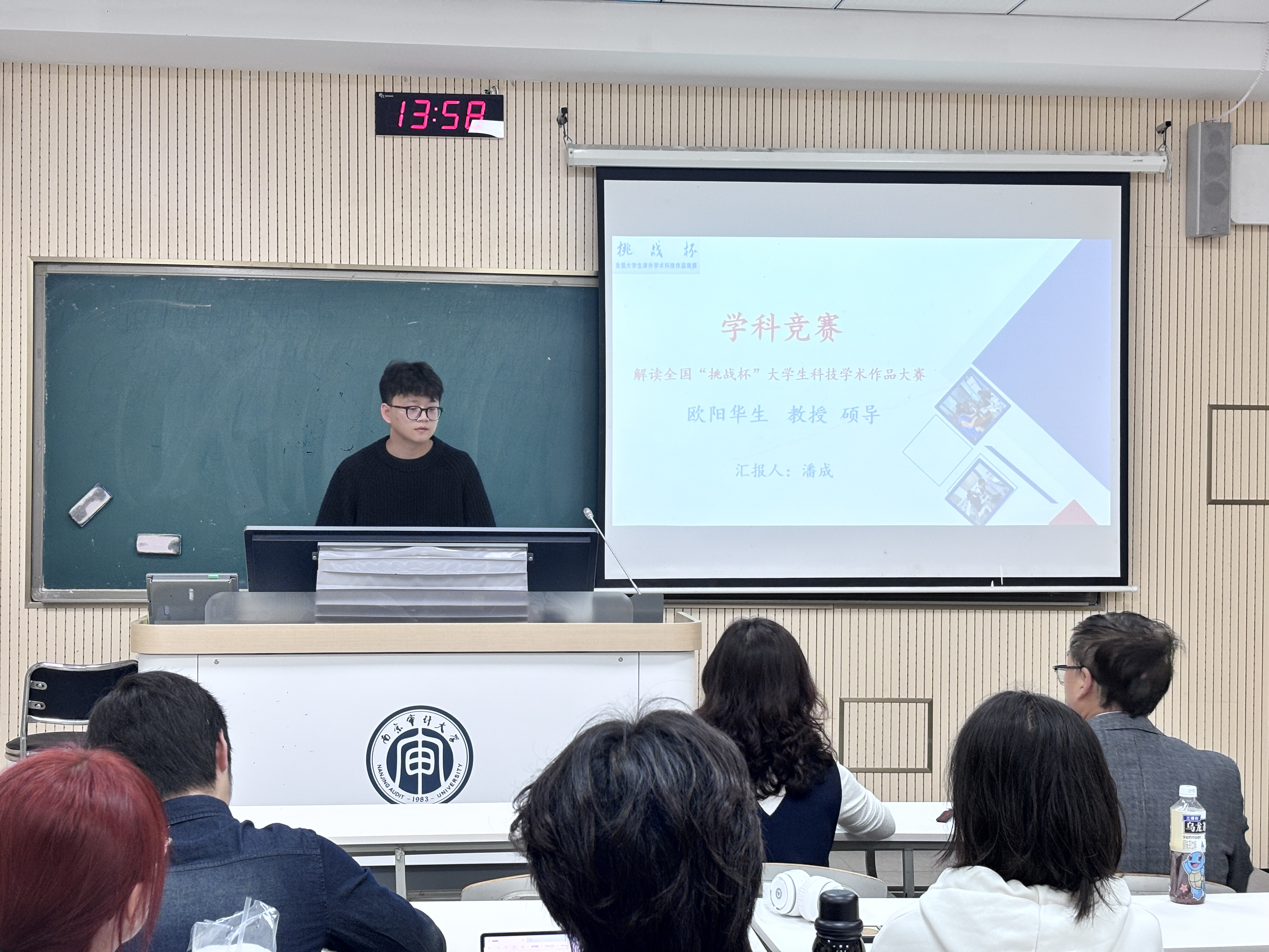 潘成同学从“挑战杯”竞赛的背景、内容要求、名额分配、实战赛况及心得建设五个维度对大赛进行了深入解读。他强调,哲学社会科学类参赛作品应贴近实际、贴近生活、贴近群众,依托典型调查,以小见大,了解新情况,反映新问题,体验新实践。
