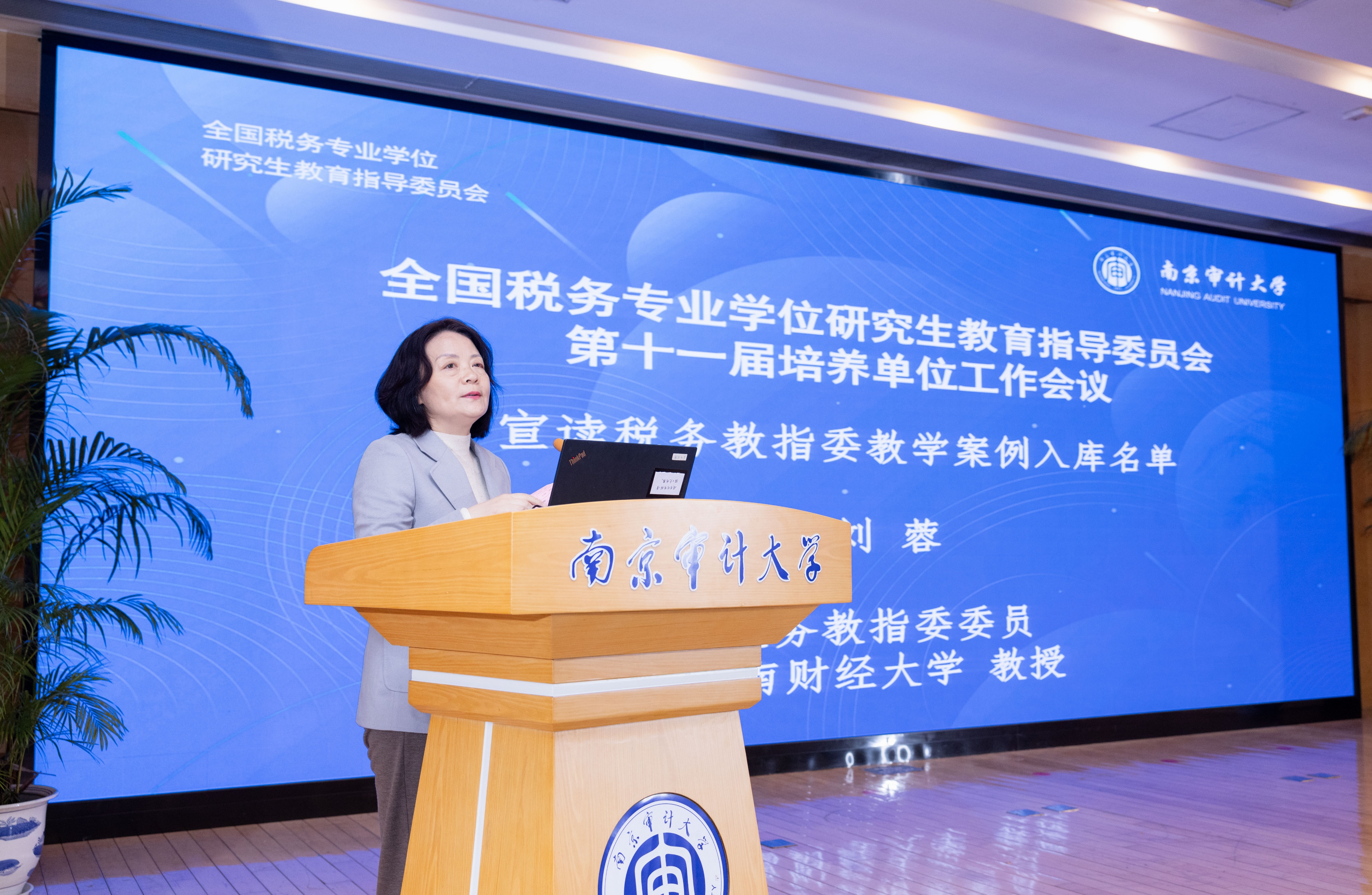 税务教指委委员、西南财经大学教授刘蓉宣读税务教指委教学案例入库名单。