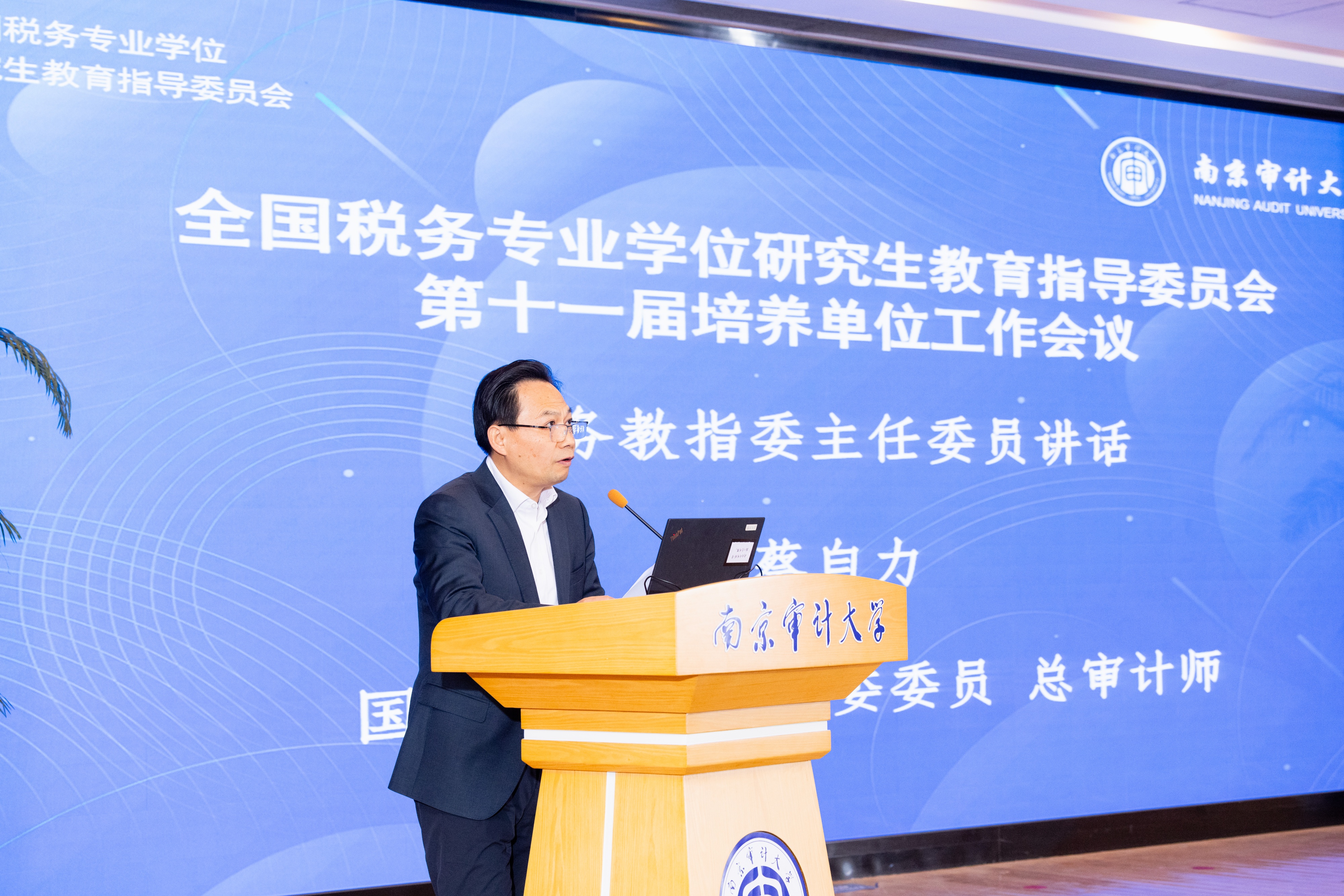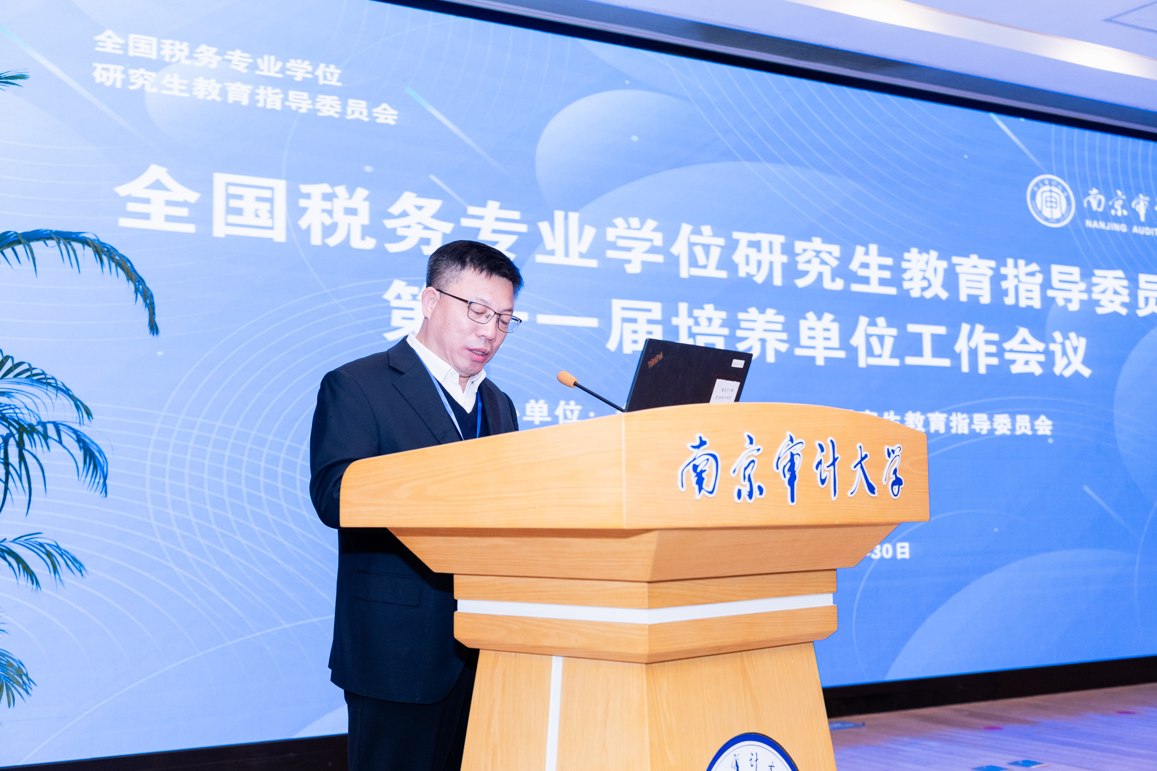 2024年11月30日,由全国税务专业学位研究生教育指导委员会(以下简称“税务教指委”)主办、yd222云顶线路检测承办的全国税务专业学位研究生教育指导委员会第十一届培养单位工作会议在南京召开。来自全国税务专业学位研究生教育指导委员会、全国63所高校、税务机关及行业共计190余名专家、学者参加会议。