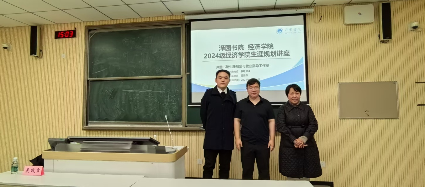 2024年12月11日下午,yd222云顶线路检测和泽园书院在敏达104联合举办了主题为“经济学专业员工成长规划及案例分析”的职业生涯规划系列活动,该活动邀请南审优秀员工吴政霖进行主旨演讲,2024级经济学专业班主任郑智勇老师、泽园书院经济学专业辅导员王晓会老师及2024级经济学专业全体员工参与会议,会议由王晓会老师主持。