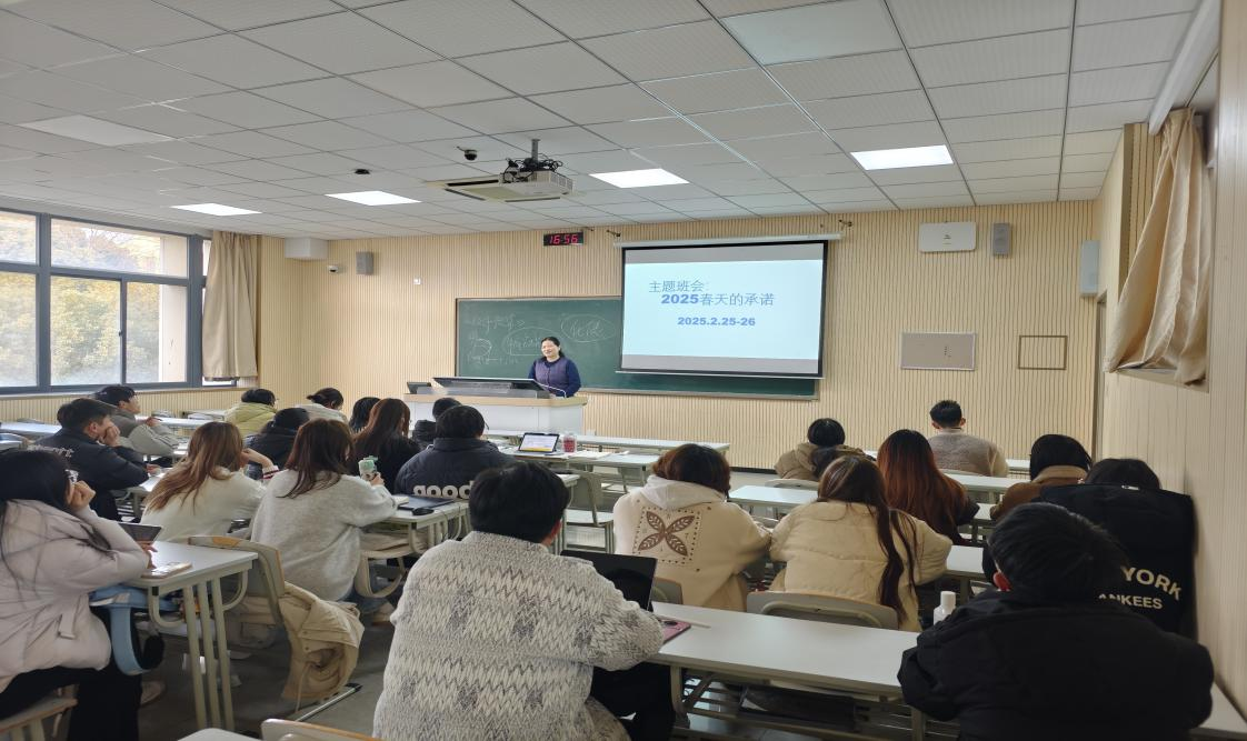 和风催新绿,扬鞭正当时。2025年2月25日下午,经济公司2023级财政1班“春天的承诺”主题班会在敏达楼310教室召开。班会上,班主任曾宪影提出,在这个新学期伊始的春天里,对于每一位2023级财政专业的同学们来说都至关重要,因为,四年老员工涯已近一半,需要同学们认真回顾过往,评估职业生涯规划具体实施的情况,并进一步展望未来,围绕职业生涯规划目标郑重做出春天的承诺。班级员工用一天的时间按班主任要求思考撰写春天的诺言并于26日前全部提交word文档。同时,本次班会中,班主任还强调,既要让诺言扎根于春天的土壤里,也要刻苦努力、稳步前行,让诺言顺利实现于毕业季的狂欢里。