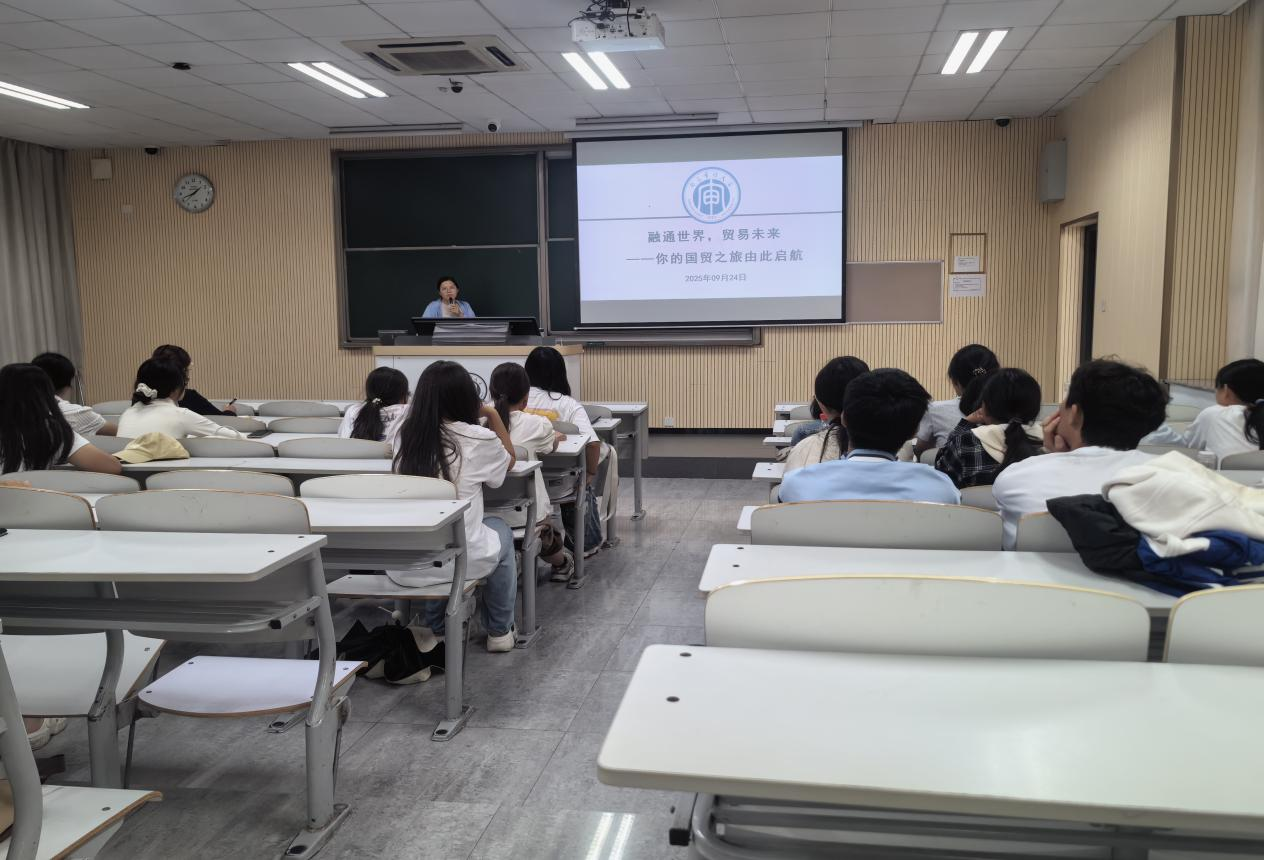 国贸专业以“融通世界,贸易未来”为主题开展活动。班主任武晓霞老师从核心课程、团队力量、科研氛围等方面介绍专业实力,鼓励新生“刨根问底”钻研专业;王庚老师激励大家“不松懈、不荒废,充实自我,打造核心竞争力”,以积极姿态迎接大学挑战。