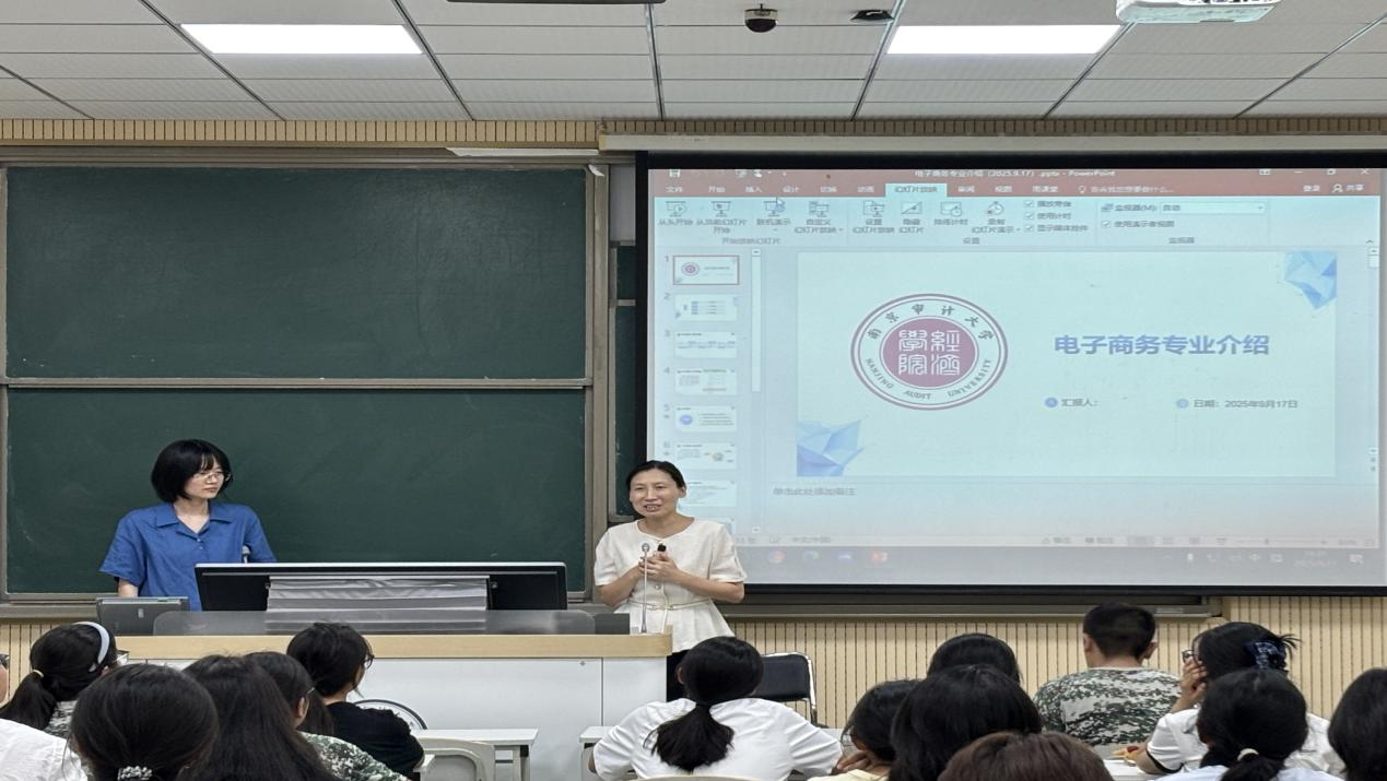 电子商务专业新生专业教育活动现场亮点纷呈,内容充实。活动由电子商务系主任王红霞老师主持,内容涵盖专业解读、学业规划与经验分享等多个环节,为新生带来一场内容丰富的入学第一课。陈旭老师从专业特色、课程体系及职业发展前景等方面解析电子商务专业。班主任谢兆霞老师围绕学业规划与关键制度进行解读,帮助新生更好地适应大学学习生活。在员工互动环节,赵文宇、张凯茗、皇甫江等优秀毕业生通过线下线上方式,共同为新生分享宝贵经验。之后的自由问答环节中,杨以文副经理悉心为新生答疑解惑。活动最后举行了校徽授予仪式,标志着大学新征程的开启。